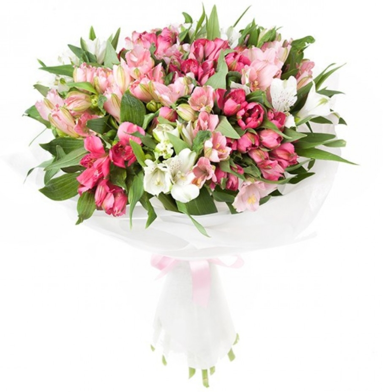 Букет состоит из MIX из 19 альстромерий, красивая упаковка, атласная лента.